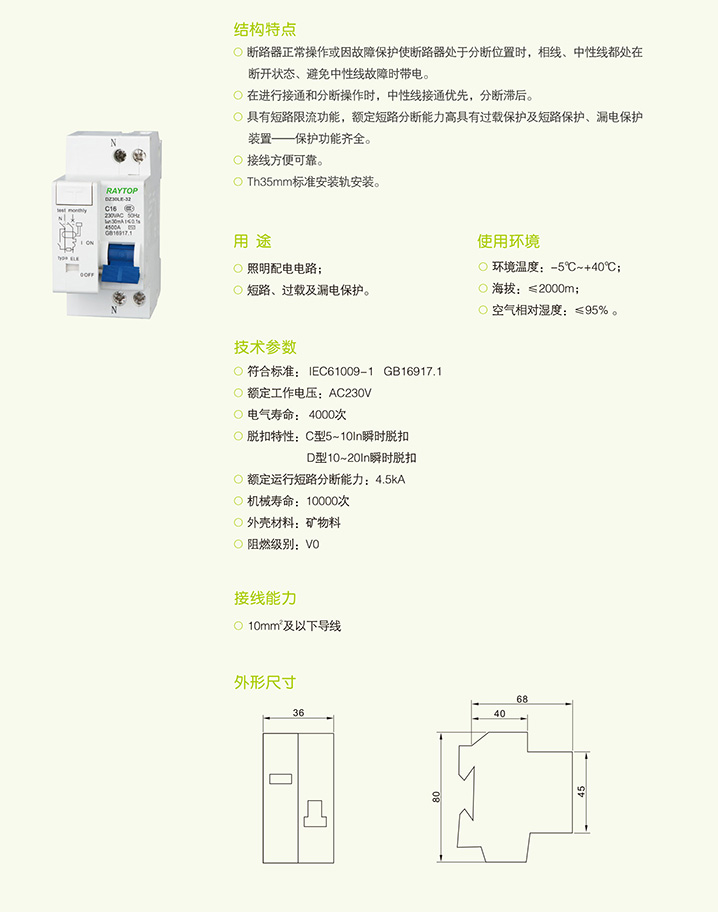 RTAR自动重合闸漏电保护开关