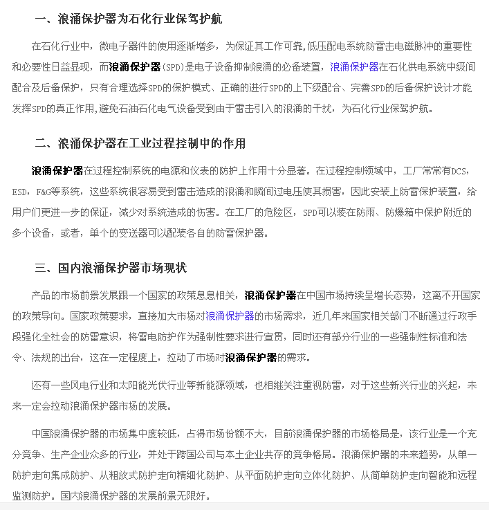 浪涌保护器在工业安全领域的应用及市场前景